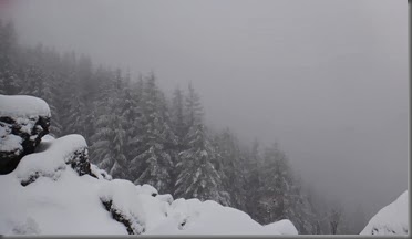 Yep, snow. But at least the dripping stopped when we hit snow level, about 1/2 way up.
